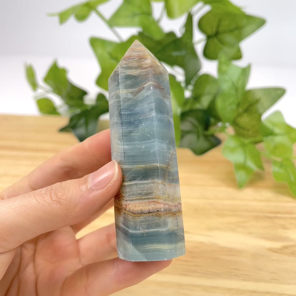 Bring serenity and strength into your space with this beautifully polished Blue Onyx Point. Known for its calming and stabilizing energy, Blue Onyx helps to reduce stress, promote emotional balance, and enhance mental clarity. Whether used during meditation, placed on your desk for focus, or displayed as a decorative piece, this crystal point serves as both a spiritual tool and a stylish accent. Let it ground your energy while inspiring inner peace and resilience.