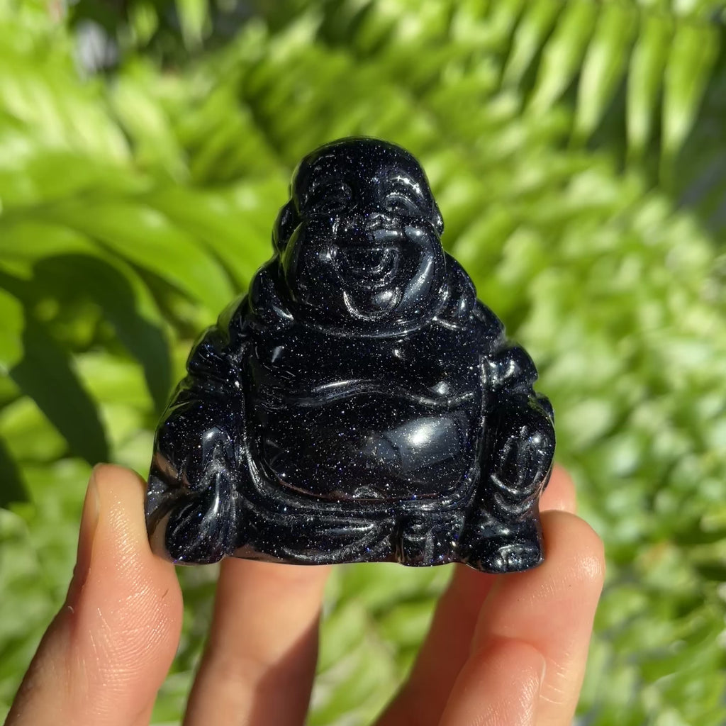 Function:Blue Sand Stone Buddha features a deep midnight-blue surface filled with subtle, shimmering sparkles, beautifully carved into a serene Buddha form. Symbolizing wisdom, peace, and spiritual awareness, Blue Sand Stone is believed to promote calm thoughts, confidence, and inner strength. The gentle sparkle reflects light like a starry sky, adding a tranquil and contemplative presence to any space.