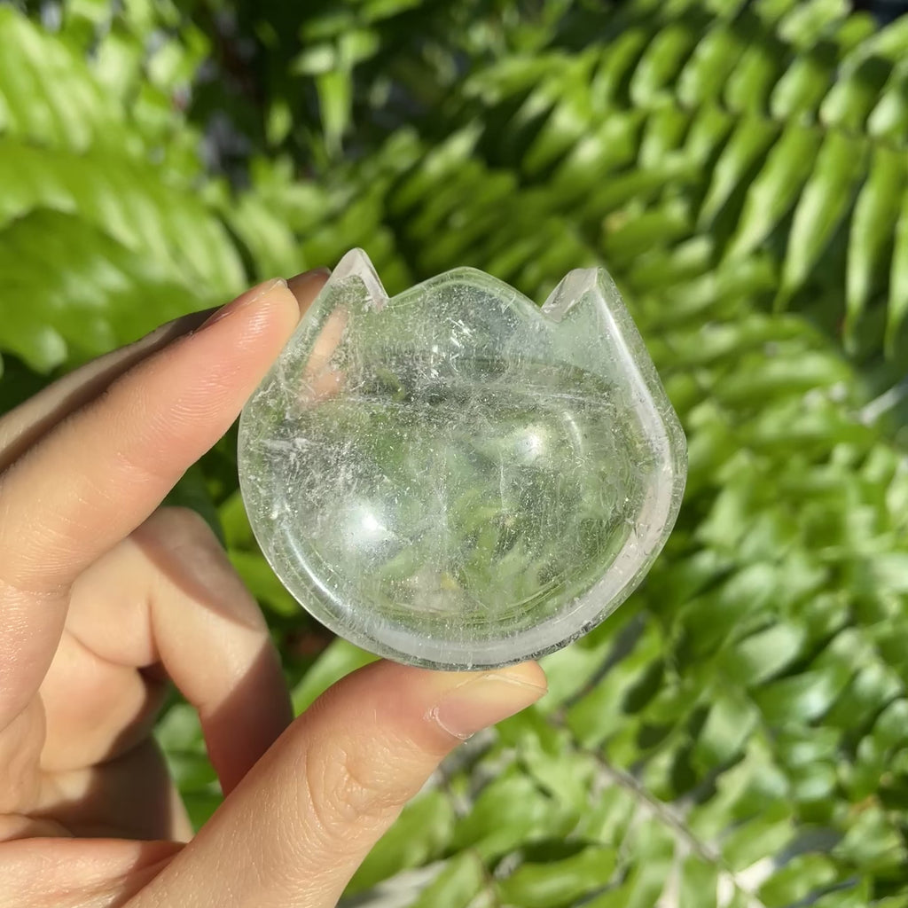 Function:Clear Quartz Cat Bowl is beautifully carved from transparent clear quartz, shaped into a charming cat form that symbolizes intuition, protection, and curiosity. Known as the “Master Healer,” Clear Quartz is believed to amplify energy, enhance clarity, and cleanse surrounding vibrations. The bowl design combines beauty with function, making it perfect for holding small crystals, jewelry, or intention items while uplifting the energy of any space.