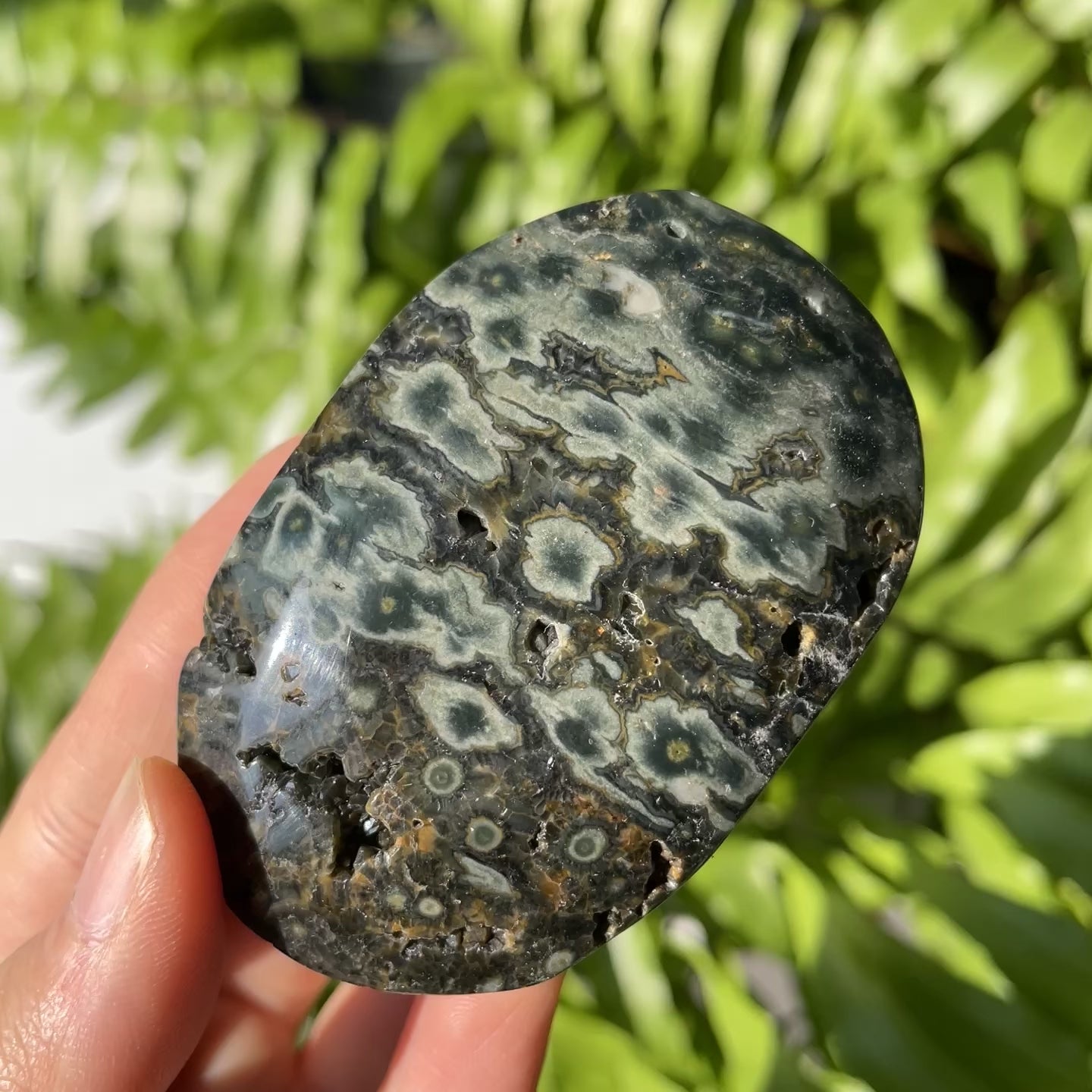 Function: Ocean Jasper Palmstone carries soothing and joyful energy, symbolizing emotional healing, patience, and inner harmony. Smoothly polished to fit comfortably in the palm, it is ideal for meditation, stress relief, and mindfulness practices. Its unique ocean-like patterns inspire calm, positivity, and emotional balance, helping to ease tension, encourage optimism, and promote a sense of peace, renewal, and overall well-being.