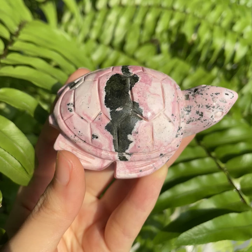 Function:Peru Rhodonite Turtle features beautiful pink tones with natural black veining, expertly carved into the form of a turtle, symbolizing longevity, protection, and patience. Rhodonite is known as a stone of emotional healing and compassion, believed to help release past emotional wounds and nurture forgiveness. The turtle design adds a sense of stability and grounded energy, making it a meaningful piece for home décor or as a thoughtful gift.
