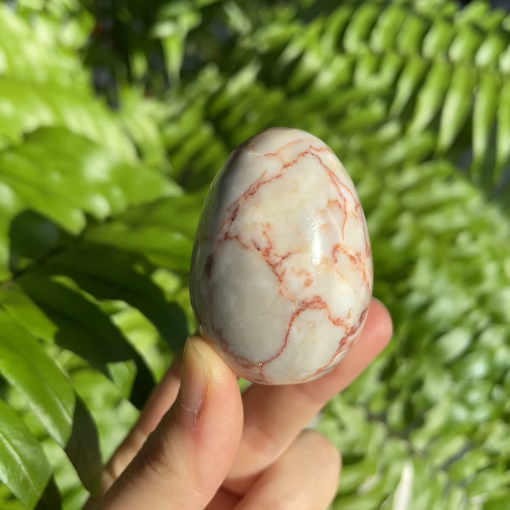 Function:Red Net Stone Egg features a striking red base interlaced with natural net-like patterns, creating a bold and dynamic appearance. Known for its grounding and energizing properties, Red Net Stone is believed to enhance vitality, courage, and personal strength. The egg shape symbolizes new beginnings and potential, making this piece both visually captivating and spiritually meaningful.