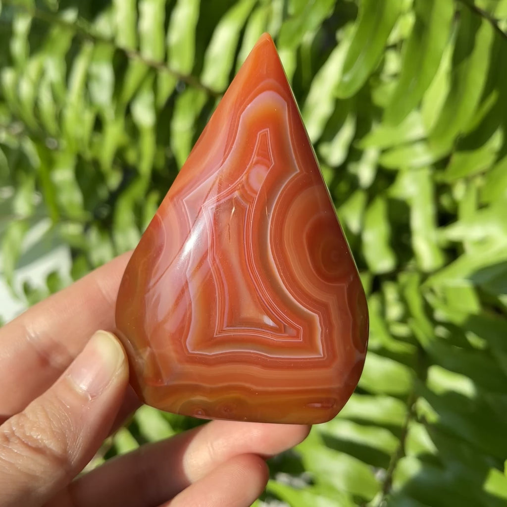Function: Red Sardonyx Ornament carries strong protective and energizing energy, symbolizing strength, courage, and stability. Smoothly polished to showcase its rich red and brown banded patterns, it is ideal for display, meditation, or daily energy practices. Its vibrant tones inspire confidence, emotional balance, and resilience, helping to dispel negativity, enhance focus, and promote a sense of inner strength and grounding.