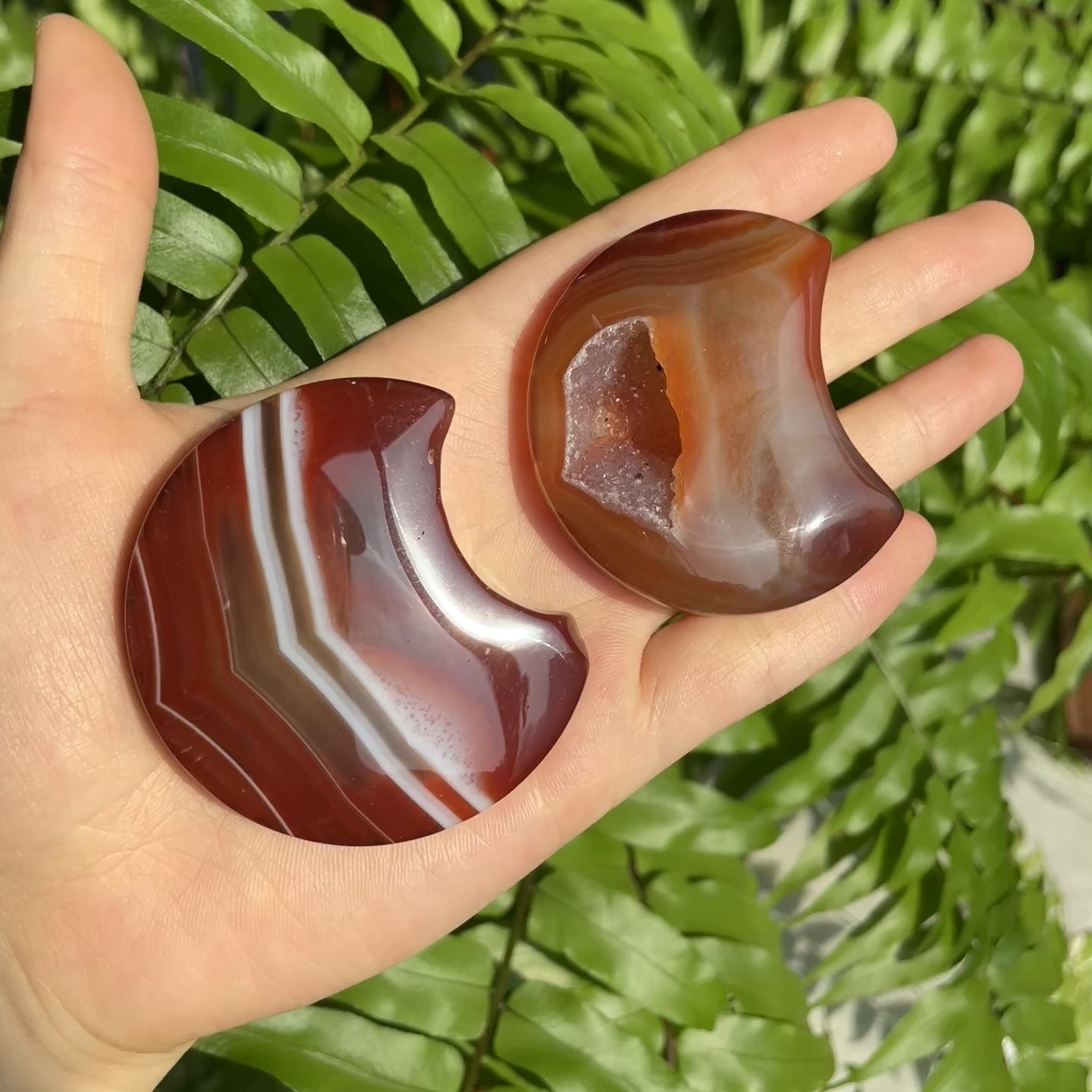 Function:Sardonyx Moon features rich layers of warm browns, creams, and subtle reds carved into a graceful moon shape. Known as a stone of strength and stability, Sardonyx is believed to support confidence, discipline, and emotional balance. The moon symbol represents intuition, cycles, and inner reflection, making this carving a meaningful piece for spiritual décor or personal energy work.